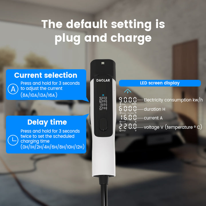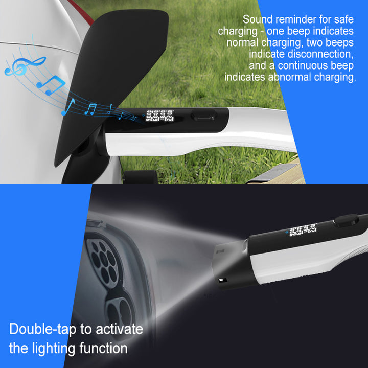 - Reaaliaikaiset tiedot yhdellä silmäyksellä: Type 2 -pistoolissa on **kirkas näyttö**, joka näyttää tehon, virran, jännitteen ja latausajan reaaliajassa. Seuraa helposti **3,68KW, 230V yksivaiheinen, 16A** lataustilaa!