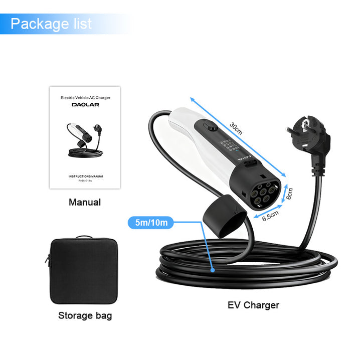 Daolar Kevyt Kannettava EV-laturi 3,68 kW 8-16A, Tyyppi 2 Mobiililatauskaapeli Näytöllä Sähköautolle