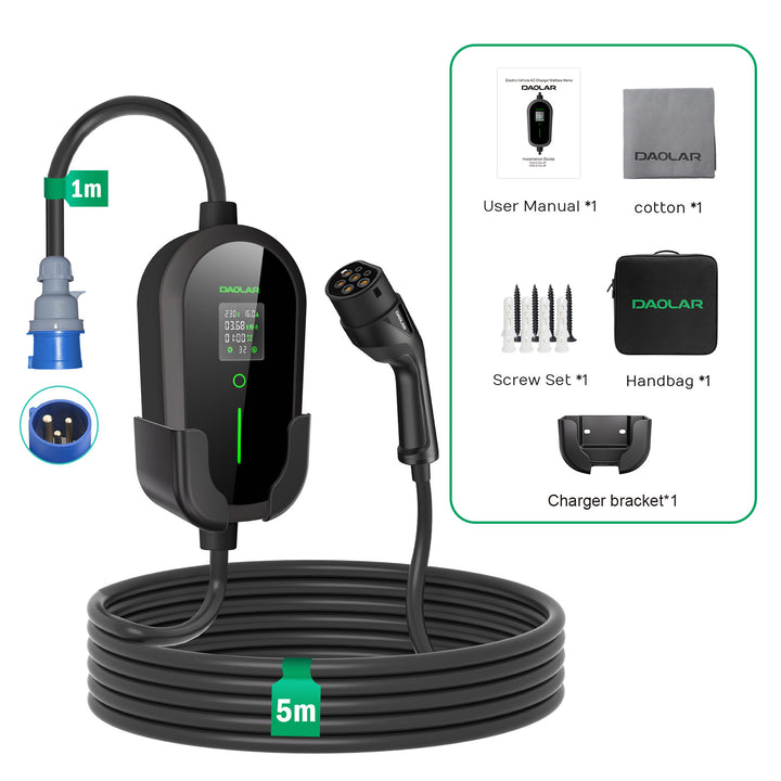 ✅ Facile da usare: Caricabatterie per veicoli elettrici Compatibile con la maggior parte dei veicoli elettrici e PHEV conformi agli standard di tipo 2. Compatibile con la presa CEE blu monofase da 32 A, non richiede installazione.