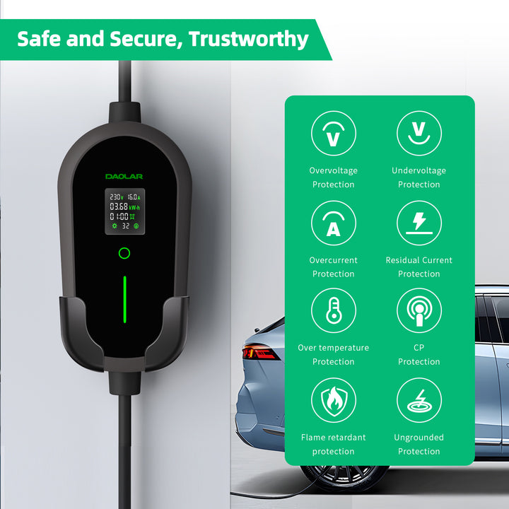 ✅ Ricarica intelligente: Le impostazioni di potenza flessibili di 6A/10A/16A/24A/32A si adattano al circuito di ricarica della tua auto per una maggiore sicurezza. Pianifica la ricarica per 1-12 ore e gestisci il tuo tempo in modo efficace impostando l'orario di inizio per evitare i periodi di picco. Il caricabatterie è dotato di uno schermo OLED da 1,4 pollici che visualizza informazioni in tempo reale come tensione, corrente, potenza, tempo di ricarica e temperatura. Inoltre, la luce LED lampeggia in diversi colori per indicare lo stato di ricarica del veicolo elettrico e le segnalazioni di guasto.