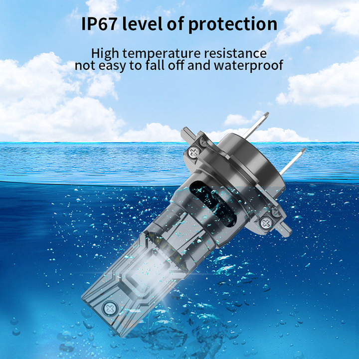 Prestazioni Resistenti a Tutte le Intemperie con Protezione IP67: Realizzate con un corpo in lega di alluminio di alta qualità e una protezione IP67, queste lampadine sono progettate per resistere ad alte temperature e garantire completa impermeabilità. La costruzione robusta assicura durata nel tempo, risparmio energetico e protezione ambientale in qualsiasi condizione di guida.